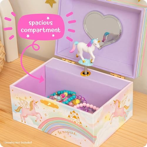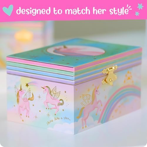 Unicorn Jewelry Box For Girls - Igniting awe & wonder in imaginative hearts, this musical jewelry box for girls brings radiant smiles to every little girl. Watch as she becomes immersed in the gracefully dancing unicorn, twirling to Beautiful Dreamer Unlock Nostalgia - Giggle & Honey girls jewelry box brings delight that spans generations & evokes beautiful memories for adults & kids. With ample space for necklaces, bracelets, earrings & keepsakes – watch the joy as they fill it with treasures Elegant Design - Elevate your daughter's unicorn décor with an exquisitely designed jewelry box for little girls. The intricate details on the kids jewelry boxes are crafted by curated artists & boast dazzling unicorn details that captivate and charm Fine Craftsmanship - Made with sturdy pine fiberboard & tested for safety, this jewelry box for kids is built to last. The spinning unicorn music box for girls complies with all CPSIA, ASTM, and EN71 guidelines ensuring the wellbeing of any child Enchanting Gift - In ready-to-gift packaging, they’re perfect unicorn gifts for girls aged 3, 4, 5, 6, 7, 8, 9 & 10 for birthdays, Christmas and more. Plus, the music jewelry boxes for girls complement existing unicorn toys & unicorn room décor