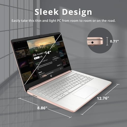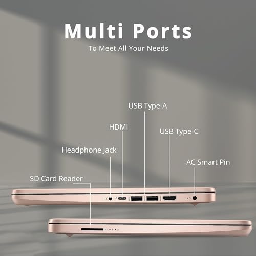 Display: HP Laptops 14inch features HD IPS display with narrow bezel boasts impressive color and clarity for presenting vibrant, crisp images. Processor | Graphics: Rose gold laptop HP powered by quad-core Intel Celeron N4120 processor can run multiple chrome tabs and some android apps working in the background fast; And also suitable for playing games. Features: USB Type-C, Wireless-AC, micro SD card reader, HDMI port, up to 13.5hours battery life, 720p HD webcam, stereo speakers. CPU Model Speed: 26 GHz | Display Type: LED | Keyboard Layout: Qwerty | Power Source Type: Battery Powered