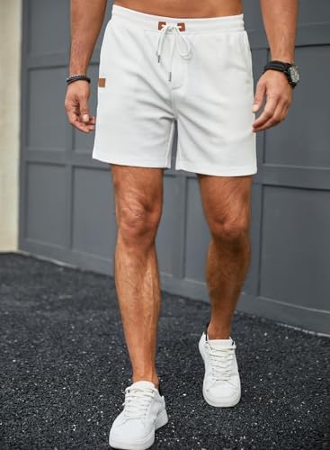Waffle elastic and comfortable Breathable material: Our JMIERR Men's Casual Shorts are made of a 95% Polyester + 5% Elastane waffle fabric, ensuring maximum breathability, softness, and comfort. The highly elastic material provides great flexibility for daily activities, mens shorts making it perfect for sports or casual wear. Sports design: Our sports shorts men design features sports pants made of medium elastic fabrics, providing optimal comfort during physical activities. The long drawstring waistband allows for adjustable fit, and the front and back pockets with a three-dimensional leather label design enhance the overall style. Reinforced pockets: Our sports casual shorts come with reinforced pockets - 2 on the front and 2 on the back, The two back pockets are button pockets. The reinforced treatment ensures that your phone, keys, or wallet stay securely in place while jogging or running. Our workout shorts are designed for multiple occasions. They come with an adjustable internal drawstring and elastic waistband, providing a slim and fit appearance. These versatile shorts can be worn for lounge, golf, hiking, training, gym workouts, running, and other sports activities, as well as for daily life and work. They also make perfect gifts for your loved ones. Package Content: The package includes 1 X JMIERR Mens Casual Shorts. Please refer to the JMIERR Size Chart for accurate sizing before placing your order. These stylish and high-quality mens summer shorts are a must-have addition to any wardrobe, making them perfect for yourself or as a thoughtful gift for your boyfriend, son, husband, or any fashion-conscious individual. #3,433 in Clothing, Shoes & Jewelry ( ) #15 in #56 in
