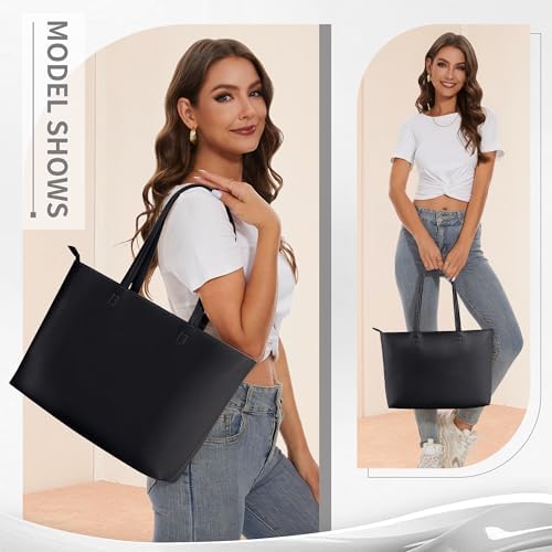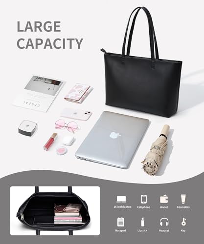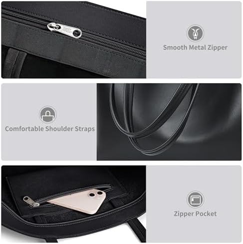 【Premium Faux Leather】 KALIDI tote bag is made of thickened vegan leather with a finer texture, making it more durable and easy to clean. Inside with a suede layer, increase friction forbid things slip out from the tote, also feel soft touching. 【Minimalist Design】 Whole shoulder bag is solid color designed with impeccable clean lines. Available in a range of colors, perfect for any outfit and any age women. 【Zipper Safe】 Both the top closure and the internal pocket have delicate zippers to keep your daily essentials safe. Easily take you through all occasions of every day. 【Reinforced Shoulder Straps】 The 2cm-wide folding stitching design thickens straps to hold up better, won't dig into your shoulders while carrying heavy stuffs, increasing their durability and comfort. 【Roomy Space】 Dimension: 14" x 10.6" x 3.3". Large enough for 15 inches laptop, iPad, books, make up stuffs, groceries and anything in between. Good choice for work, dating, travelling, shopping, wedding etc. #8,673 in Clothing, Shoes & Jewelry ( ) #17 in #25 in