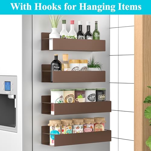 4 Pack Magnetic Spice Storage Rack Organizer for Refrigerator and Oven, Bronze Fridge Organizers and Storage