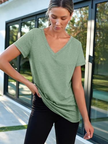 This short sleeve v neck tops is made of 82%Polyester 12%Rayon 6%Spandex, soft, lightweight, breathable, light-stretch, wrinkle-free and skin-friendly. Design: basic t-shirts, v neck, short sleeve, strechy fabric, solid color, loose fit, lightweight, comfy under shirts, casual style, suitable for spring, summer and fall. Match: This womens casual short sleeve tees is easy to match with jeans, shorts, sweatpants, leggings, cago pants. Also can wear as a undershirt and match with casual coat or jacket. Creat a chic and stylish daily look. Occasion: Casual lounge t shirts, perfect for daily life/workout/travel/running/home/office/vacation/sport/gym/yoga/going out. A basic summer outfis tees that suitable for all occasions. This short sleeve basic t-shirt sets is suitable for machine or hand washes in cold water. #69 in Clothing, Shoes & Jewelry ( ) #6 in