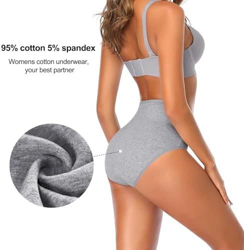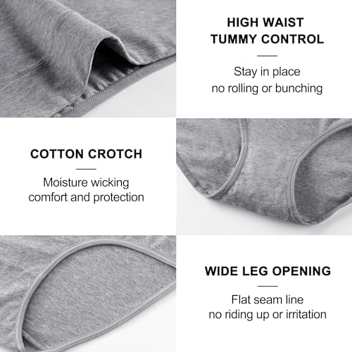 FULL COVERAGE UNDERWEAR FOR WOMEN: These cotton panties provide full seat coverage,so no tugging to pull the legs down.The high rise underwear offers moderate tummy support,comfortable without non-pinching hip,reduces the appearance of muffin top with no rolling down or digging.Easy on and easy off undies.Work great with high waisted jeans.Suitable for giving to your female friends, mothers,and grandma. STRETCHY COVERED WAISTBAND: Full coverage high waisted underwear,Soft stretchy DOUBLE-LAYER fabric covered waistband that stays in place at the waist.No rolling or bunching,with no compression but perfectly snuggish.The high-waisted design helps to smooth and shape your silhouette for a flattering look. BREATHABLE DOUBLE-LAYER CROTCH: Cotton underwear for women with double-layered soft fabric crotch,the fabric is breathable,keeping you dry and breathable while wearing it.Double crotch design for more privacy health. ULTRA SOFT COMFORT WOMENS COTTON UNDERWEAR: This soft and comfortable underwear for women is made of cotton and spandex.The panties don't dig into skin or stretch out.The seam lines are smooth and don't irritate.No deformation after washing or drying.They can be used as ordinary panties,but also as c section underwear postpartum,and the soft fabric will not irritate the skin. ALL DAY COMFORT: High waisted slight tummy control underwear is made of soft,breathable materials that provide all-day comfort.Please refer to our size chart before purchasing for the best fit.