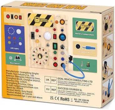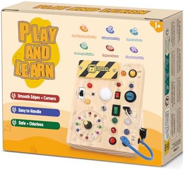 Busy Board,Montessori Toys for 1-3 Years Old, Wooden Toddler Toys, Sensory Travel Toys, Ideal Gift for 1+ Year Old Boys (Busy Board Plus V2), Medium, Yellow