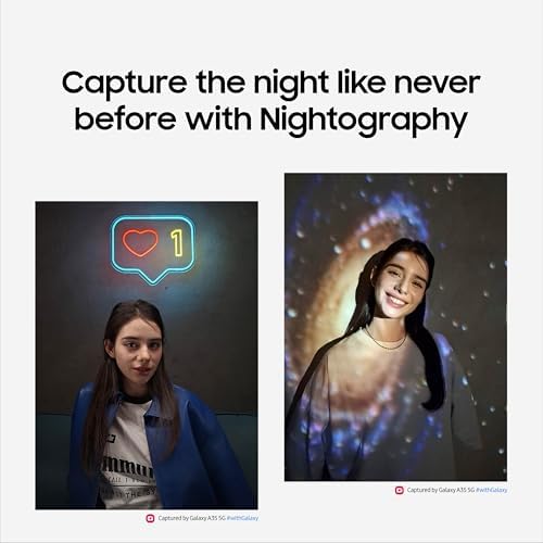 CIRCLE IT, SEARCH IT, FIND IT. JUST LIKE THAT: What’s your favorite influencer wearing? Where’d they go on vacation? What’s that word mean? Don’t try to describe it — use Circle to Search with Google¹ and get the answer in a snap OUR BRIGHTEST GALAXY A SERIES SCREEN YET: Thanks to Vision Booster, the screen seamlessly adjusts to your surroundings so you can enjoy uninterrupted streaming, gaming or browsing² even on the sunniest afternoon STUNNING SHOTS. VIVID VIDEO: Advanced triple-lens camera of turns every moment into a masterpiece; With high-res photos & high-definition video, it’s easy to capture awe-worthy content and optical image stabilization lets you capture it blur-free CAPTURE THE NIGHT LIKE NEVER BEFORE: Your nights just became a whole lot brighter with Galaxy A35 5G; Whether it’s fireworks, birthday candles or smiles under the stars, low-light photos and videos look clear as day with stunning Nightography NOW THERE’S EVEN MORE IN STORE: Enjoy big storage for big memories; With an upgraded internal storage of 128GB and up to 1TB expandable storage³; A35 5G keeps all your memories close without worry of running low on space