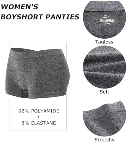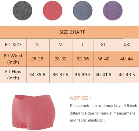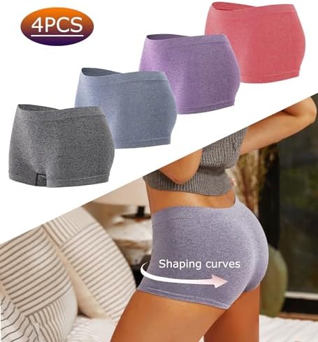 Boy shorts underwear for women : This womens boxer briefs fit snug but comfy , tagless label to keep you from annoying tag irritation or skin allergy. Womens underwear seamless : 92% polyamide 8% elastane skin friendly fabric, Silky smooth when touching and design of sideless underpants prevent protrude from the sides when worn, and makes you have a more perfect figure when you wear them. Underwear women pack : Four basic colors are available, Breathable fabric Keep You Dry And Comfortable All Day — the Best Underwear For Girls//Women/Ladies/gravida , Suitable For Wear Sleeping in and/or just lounging around the house. Boxers for women : Classic solid color boxer shorts style, It makes you looks much more charming . They have good stretch but not baggy, they stay where they should no matter how you bend fold stretch or anything. Professional & Reliable Service : If you have any questions for this womens boy shorts underwear , please feel free to contact us and we will help you solve them to your satisfaction. #3,627 in Clothing, Shoes & Jewelry ( ) #8 in