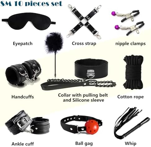 Sex Bondage BDSM Kit Restraints,30PCS Leather Bondage,Sex BDSM Toys with Adjustable Handcuffs and Anal Plug Toys,Sex Things for Couples Kinky, Sex Bondage Set for Women Couples &Sex Toy kit,SM Games