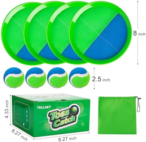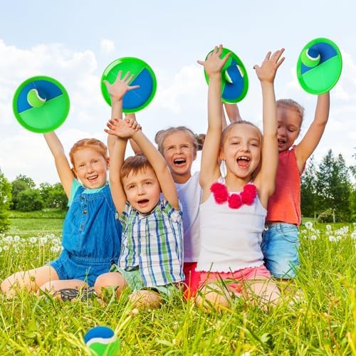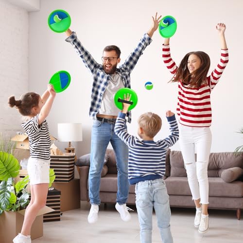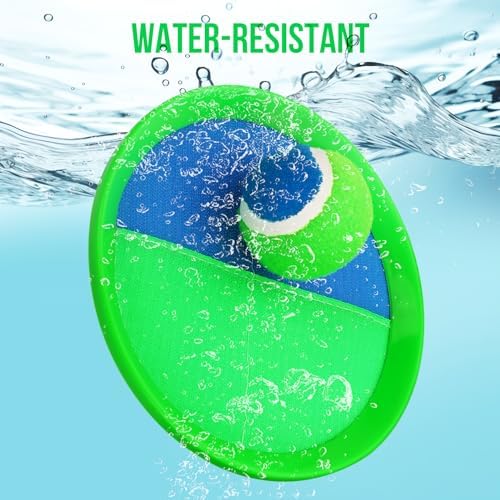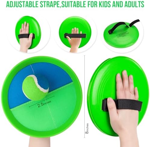 【Upgraded Unbreakable Paddles】Our toss and catch ball set features high-quality nylon sticky fabric for durability. The paddles are not fragile, and the softer balls prevent damage to the racket. With a waterproof material lining, these paddles are perfect for beach, pool, outdoor, yard games, camping, backyard, park, or garden. 【Adjustable Comfort】The strap features an adjustable design, making it convenient to adjust while playing. Additionally, the length of the strap is long enough for adults, allowing both adults and children to participate in the toss and catch game. Spend quality time with your children, enhancing your bond while enjoying leisure activities. 【Improves Kids' Fitness】The toss ball game exercises kids' hand-eye coordination and arm muscles, keeping them active and happy. It also enhances focus and motor skills, helping kids learn the basics of throwing and catching like in baseball. The catch and throw ball game is perfect for all kids, including those with sensory needs. 【Outdoor Fun】A toss and catch game that kids will relish! You can play this catch and ball game indoors, in the backyard, at the park, on the beach, or even in the pool. With these perfect outdoor toys for kids ages 3 and up, you can have fun with friends and family for hours. 【Great Gift】Our catch ball set comes with 4 paddles, 4 balls, and a storage bag. It's the perfect racket for outdoor fun and a great choice for a gift. Whether you're at the beach, in the backyard, or on the playground, you can play without restrictions. It's suitable for boys and girls ages 3 to 12 as a birthday or Christmas present, helping them stay away from screens and develop good exercise habits.