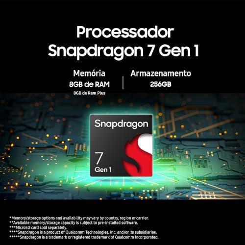 6.7" FHD+ Super AMOLED+ display, 1080x2400px, 120Hz Refresh Rate, Android 14, One UI 6.1, Bluetooth 5.2 256GB, 8GB RAM, Qualcomm SM7450-AB Snapdragon 7 Gen 1 (4nm), Octa-core, Adreno 644 GPU, Fingerprint (under display, optical) Rear Camera: 50MP, f/1.8 (wide) + 8MP, f/2.2 (ultrawide) + 2MP, f/2.4 (macro), Front Camera: 50MP, f/2.4 (wide), 5000mAh Battery 2G: GSM(850)/GSM(900)/DCS(1800)/PCS1900, 3G: UMTS 1(2100)/2(1900)/4(AWS)/5(850)/8(900), 4G LTE: B1(2100)/2(1900)/3(1800)/4(AWS)/5(850)/7(2600)/8(900)/12(700)/17(700)/20(800)/25(1900)/26(850)/28(700)/38(2600)/40(2300)/41(2500)/66(AWS-3), 5G Su6: N1(2100)/3(1800)/5(850)/7(2600)/8(900)/20(800)/28(700)/38(2600)/40(2300)/41(2500)/66(AWS-3)/78(3500) - Dual SIM (SIM + SIM / SD CARD) International Model - No Warranty in the US. Compatible with Most GSM Carriers like T-Mobile, Ultra Mobile, Mint Mobile, etc. Will NOT work with CDMA Carriers Such as Verizon, Boost