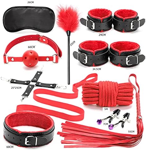 31 Pcs Bondage Restraints Set BDSM Kit Sex Toys, Gear & Accessories with Straps & Cuffs & Anal Plug & Double Dildo& Vibrator & Nipple Clamps & Feather & Whip & Blindfold