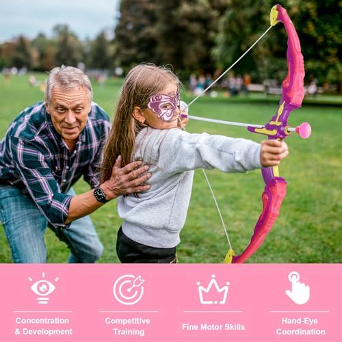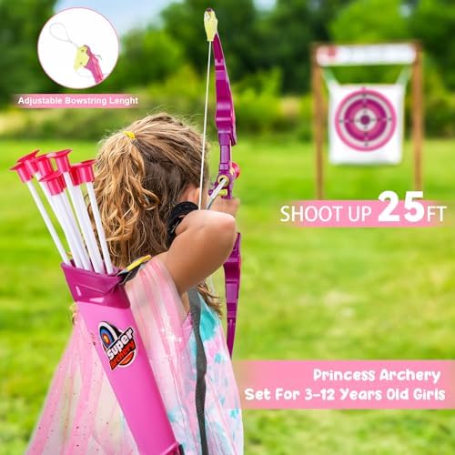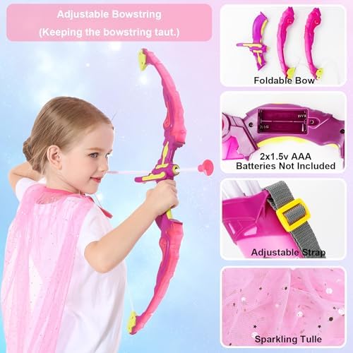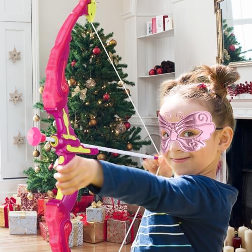 VGOFUN Kids Bow and Arrow Set: LED Light Up Archery Toy with Princess Cape and Headband, 10 Suction Cup Arrows, Outdoor Toys Gifts for 3-8 Year Old Girls (Archery Set with Butterfly Mask)