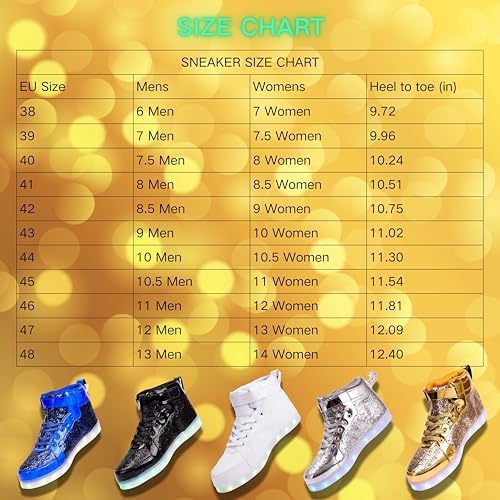 USB Rechargeable: These shoes feature a built-in USB charging port, making them easy to recharge and ensuring long-lasting use. 11 Sole Lighting Modes: The shoe soles offer 11 different LED light patterns, controlled by a convenient switch, allowing you to choose from various colors and dynamic effects. Leather Upper: Crafted with premium leather, the shoes are durable, stylish, and provide a sophisticated look. Switch-Operated Control: The lighting modes are easily managed with a simple switch, offering hassle-free customization. Comfort and Style: Designed with cushioned insoles and ergonomic support, these shoes combine comfort with a modern, eye-catching design, perfect for nighttime outings or casual wear. #125,396 in Clothing, Shoes & Jewelry ( ) #587 in #982 in
