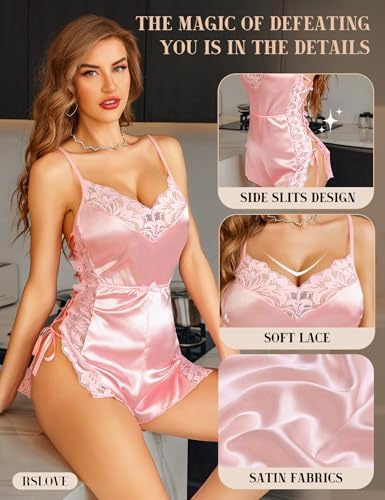 Irresistibly Seductive Sleepwear: Unleash your inner queen with this stunning one-piece sexy lingerie that combines elegance and sexiness effortlessly; Luxurious Satin Fabric: Crafted from lightweight, breathable satin, this womens pajama sets offer ultimate comfort and a silky smooth feel against your skin; Chic Design Elements: Featuring a captivating V-neck, playful side slit with adjustable ties, adjustable straps, and intricate lace detailing, this silk sleepwear is designed to highlight your sexy curves and enhance your natural beauty; Perfect for Various Occasions: Our pajamas for women set ideal for romantic evenings, anniversaries, or honeymoon nights. It's also an excellent choice for bachelorette parties, Valentine's Day surprises, boudoir photoshoots, or simply treating yourself to a luxurious night in; Package Includes: 1x Satin Lace Nightwear for Women. Hand wash in cold water, and hang to dry; #354,116 in Clothing, Shoes & Jewelry ( ) #2,485 in