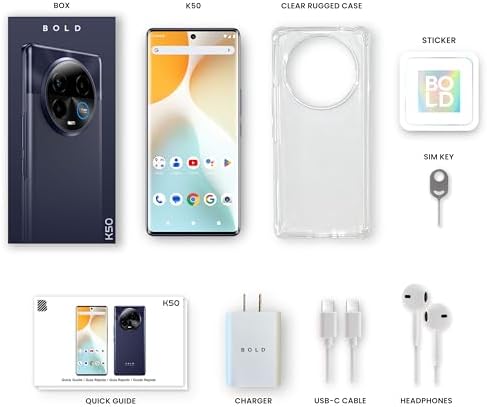 GSM Unlocked: Use your preferred GSM carrier with ease. Compatible with T-Mobile, Metro PCS, and others. Sim card not included. For availability on select networks, please consult your service provider. Note: This device is not compatible with AT&T/Cricket or CDMA networks like Verizon and Sprint. The Future of Mobile Technology: Experience a new era of mobile connectivity with 5G phones. Offering speeds up to 100 times faster than 4G, you can stream, download, and game like never before. Enjoy more reliable connections and lower latency, ensuring you stay connected even in crowded areas. Curved Brilliance: Elevate your gaming and video watching with a 120Hz display. With twice the frame rate of a standard 60Hz display, you’ll experience smoother, more fluid motion, making your games and videos look more realistic than ever. Next-Level Gaming: The BOLD K50 is more than just a phone; it’s a mobile gaming powerhouse. Powered by the next-gen MediaTek Dimensity 6300 processor and the ultra-capable ARM Mali-G57 GPU, it delivers smooth, high-performance gameplay to keep you ahead of the competition. Breathing Light: The BOLD K50 camera features a beautiful halo breathing light that elegantly pulses to life upon receiving notifications, adding a touch of style to your device. Perfect Connection: Stay seamlessly connected with NFC technology, which allows you to effortlessly link your phone with all your other gadgets. Enjoy a stress-free daily life with automatic connections to your essential devices.