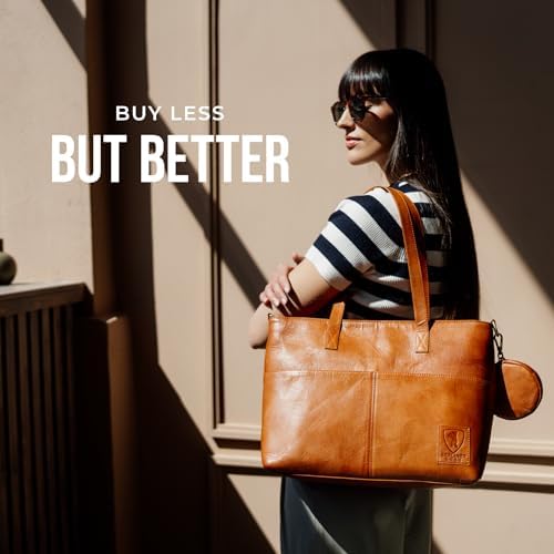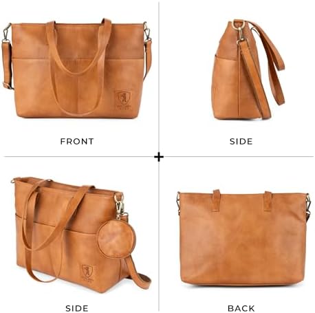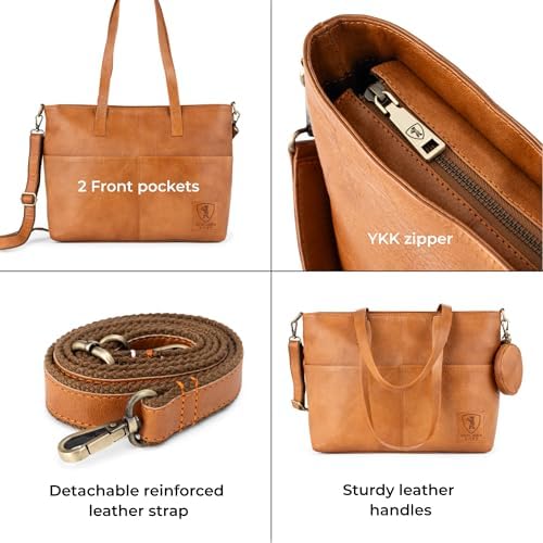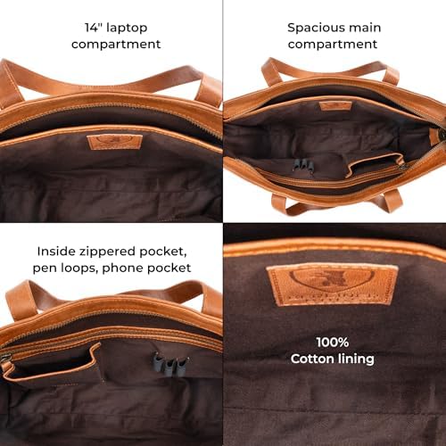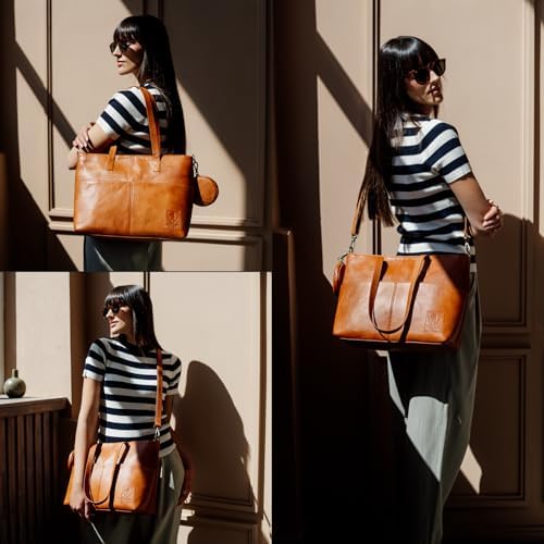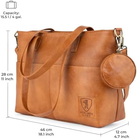 YOUR DREAM BAG. The Julia handbag is ideal for work, office, university, and everyday wear. Its vintage design suits any outfit. Detachable, adjustable reinforced shoulder strap and handles lets you wear it as a crossbody bag or shoulder bag. Two exterior pockets and a detachable round pouch provide extra space for small essentials. Dimensions: 18.1" x 4.7" x 11". DESIGNED IN BERLIN, GERMANY. The Julia work bag is thoughtfully designed in Europe and crafted from high-quality, durable materials, offering both long-lasting wear and timeless style. The cotton-lined main compartment offers multiple pockets, a 14-inch laptop case and features durable metal YKK zippers. Serves perfectly as a laptop messenger bag, carry on bag, or satchel bag for women. MADE TO LAST. We in Berliner Bags believe in quality over quantity. By focusing on fewer, durable, better-made pieces, we extend the life of our bags and reduce waste. Every bag is a lasting investment that brings years of enjoyment. VEGETABLE-TANNED LEATHER. Handcrafted from genuine vegetable-tanned leather, this bag is tanned using natural, chemical-free processes, giving it a one-of-a-kind vintage finish. Certified by TÜV to meet top European standards. SATISFACTION GUARANTEED. Your satisfaction is our number one priority! Every Berliner Bags product comes with a 1-year warranty and a 100-day return policy. (*More details at berliner-bags.com/1year/). #977 in