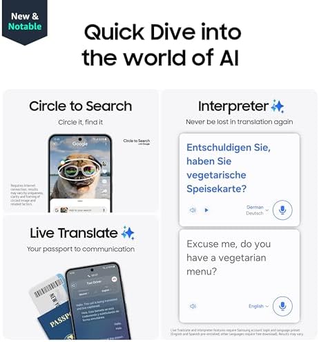 MOVE IT. REMOVE IT. IMPROVE IT: Take a great pic, then make it better using Photo Assist¹ with Galaxy AI,² It gives you suggestions for improving your photo and makes it easier to move, remove or resize objects for post-worthy pics every time. NEVER BE LOST IN TRANSLATION AGAIN: Understand text, calls and in-person conversations in another language using real-time translations¹ with Galaxy AI.² SLOW-MO MADE SIMPLE: Sometimes you just want to make the moment last longer. Using Instant Slow-Mo¹ with Galaxy AI,² simply tap and hold to replay any video in epic slow motion. DO MORE W/ EPIC BATTERY POWER: Do what you love, whether work or play, without worrying about your battery. Galaxy S24 FE intuitively manages your apps to make your charge last longer.⁴. CAPTURE HIGHLIGHTS IN LOW LIGHT: Poorly lit portraits? Not anymore. Bring details out of the dark with Night Portrait. Using AI,² your Galaxy S24 FE can analyze and optimize your low-light shots and make them shine.