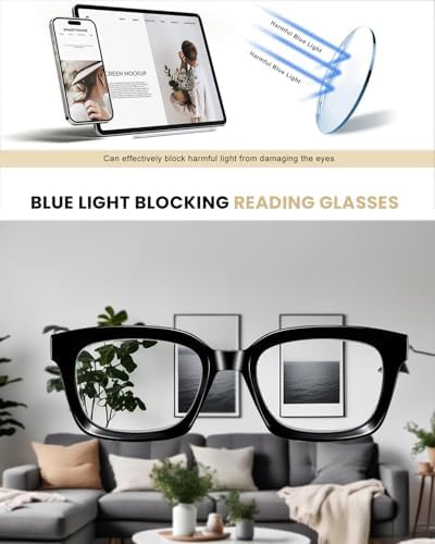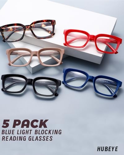 Hubeye 5 Pack Oprah Style Oversized Reading Glasses for Women Men Blue Light Blocking, Ladies Stylish Retro Square Large Computer Readers+3.0