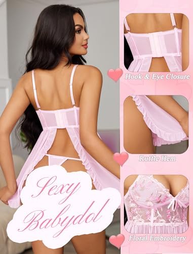 Exquisite Material: Sexy lingerie for women is made of 95% polyester fiber and 5% spandex. It is soft, lightweight, breathable, and slightly elastic, providing you with a comfortable wearing experience Back Open & Hook-and-Eye Closure: This lingerie sets for women sexy features a captivating back open that accentuates your curves, adding a touch of allure and elegance. And designed with a hook-and-eye closure on the back, offering easy on-and-off wear Floral Embroidery & Ruffled Hemline: The ruffled hemline adds a playful touch to the dress, and the floral embroidery on the chest is beautifully and tastefully done, making you even more attractive when you wear it. Occasion: Sexy nightgown is perfect for boudoir photos, Valentine’s Day, wedding night, honeymoons, date nights or anniversaries, making you feel confident and alluring. Packaging Content: Womens Lingerie * 1 + Thong * 1 #84,792 in Clothing, Shoes & Jewelry ( ) #152 in