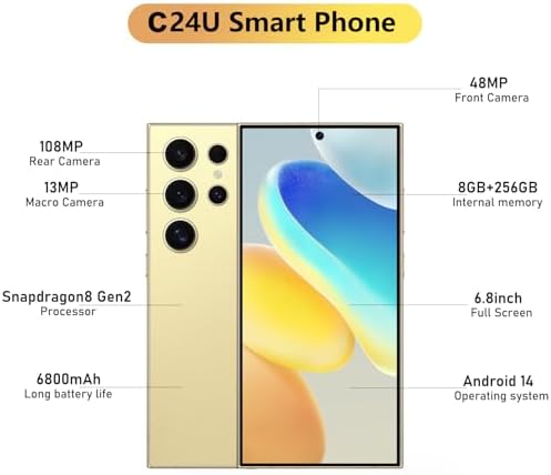 ?【Carrier Compatibility】The unlocked 5G Android phone allows you the flexibility to change carriers and choose your own data plan; works with Verizon, AT&T, T-Mobile, Sprint, Sprint and other major carriers. Version comes with a one year warranty, if you encounter any problems, please feel free to contact us. We will reply you within 24 hours. Customer satisfaction is our biggest goal! ?【108MP+50MP Camera+AI Face Fingerprint Unlocked】The Android phone comes with a 108MP main camera with enhanced image processing algorithms that make every photo exceptionally clear and detailed without being eye-catching or lifelike. The 50MP front camera further enhances the clarity and delicacy of facial features, helping you take creative selfies with accurate colors. Get your phone unlocked upon recognizing your face with AI face unlock. ⚡【8GB+256GB & Quad-Core 】The cell phone is equipped with the powerful Octa-core processor, which can dramatically improve the running speed, network, frame rate and picture smoothness, you will no more need to suffer from phone lag. 8GB RAM + 256GB ROM, which support multiple software to run smoothly at the same time, allowing you to enjoy many videos and games download to maximize your storage needs. ✨【Android 13 Unlocked Cell Phones】Unlocked phones uses the latest Android 13 system to bring you the latest and most popular features, such as: dark mode, chat bubbles, parental control mode, elegant and user-friendly interface, etc. All of this makes for a pleasant experience for the user. ?【6800mAH & 18W Fast Charging】The smartphone is powered by a massive 6800mAh battery, providing all the power required to get you through the day. Watch hours of TV, play graphically intense games, or browse the internet non-stop without fear of your device dying. Moreover, it supports 18W fast charging to withstand urgent use - when it does need a charge, make it fast.