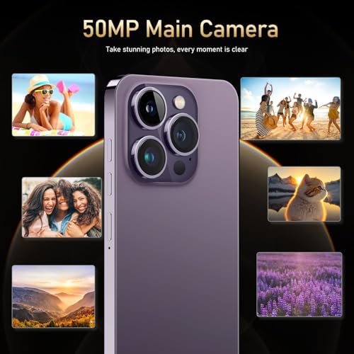 A15 PROMAX Unlocked Android Phone 8-core Android 13 Phone8GB+256GB Cell Phone 24MP+50MP Camera Pixels 6800mAh Battery for Extended Standby 7inch HD Screen Mobile Phone 5G Dual SIM (Titanium Purple)