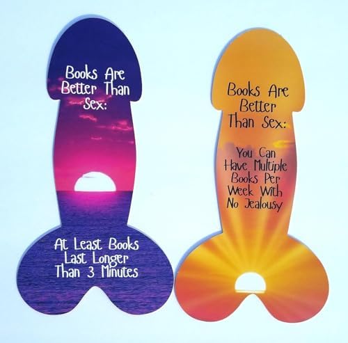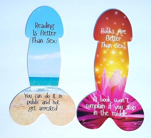 These Raunchy Bookmarkers Have Funny Reading Is Better Than Sex Sayings On Them. These Smutty Bookmarks Are Great For Book Club Gifts Made With Heavy Duty Cardstock With A Soft Touch Matte Finish. 4 Different Double Sided Smutty Bookmarks Make A Great Birthday Gift or Stocking Stuffer. Designed & Printed in the USA. Each Bookmark Is Approximately 7 Inches Tall and 3.5 Inches Wide.