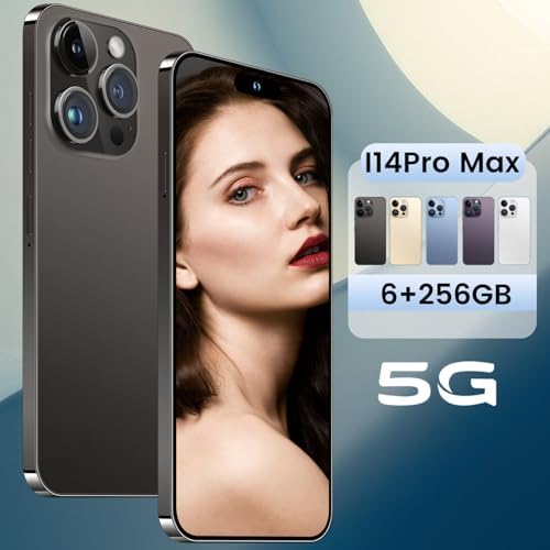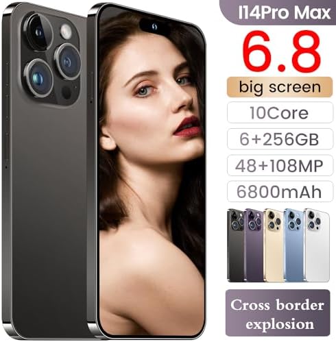 【6.8-inch HD Screen】6.8-inch HD Screen with 3040*1440 resolution 5G cell phones, deliver more vibrant colors and stronger contrasts. Magnesium aluminum body. Facial recognition, on-screen fingerprint unlock to protect your privacy. comfortable to hold. Adopts facial recognition and on-screen fingerprint unlocking to better protect your privacy. 【Android 13 & 6GB+256GB】Android 13 Phone is the lastest version, the excellent compatibility makes the smartphone 5G not obsolete in years. Powerful privacy controls protect you from malicious apps. This unlocked android smartphone has 6GB RAM makes the smartphone keep smooth when handling heavy tasks, running more apps in the background, 256GB ROM Supports expandable storage up to 128GB, Say goodbye to lag. 【108MP+48MP Camera & Deca-Core Processor】108MP main camera, paired with enhanced image processing algorithms, makes every photo exceptionally sharp and detailed, while still striking and lifelike. The cell phone is equipped with the powerful Deca-Core processor, which can dramatically improve the running speed, network, frame rate and picture smoothness, you will no more need to suffer from phone lag. 【6800mAH & 20W Fast Charging】Thanks to the 6800mAh powerhouse on the back, I14 Pro Max 5G keeps anxiety at bay with a bigger battery for offering you longer entertainment time. Moreover, it supports 20W fast charging to withstand urgent use - when it does need a charge, make it fast. 【Global Band & Dual SIM 5G/4G Phone】Support multiple bands dual card. unlocked phone will smoothly run multiple apps simultaneously with ease, meet your work and entertainment needs, such as T-Mobile, BTC, MetroPCS, H2O, Movistar, Telcel, Tigo, Claro, Vivacom, Ultra Mobile, and so on.