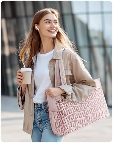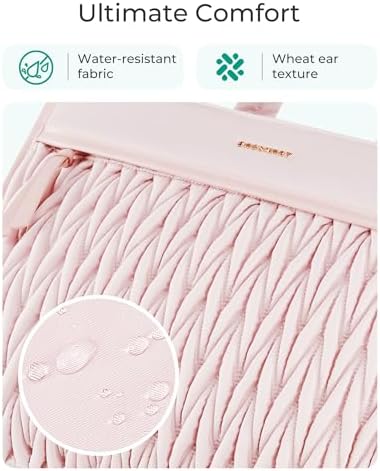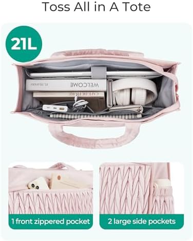 Stylish and Durable: This tote bag is made of polyester, offering good elasticity to maintain its shape and resist wrinkles. The exterior features a fashionable wheat stalk texture, making it versatile and stylish for any outfit Large Tote Bag: Size -15.7L*4.7W*12.6H inches. The 21L capacity is ample to hold all your daily essentials without feeling bulky. These travel tote bags are spacious enough to fit a phone, a 15.6" laptop, cosmetics, a water bottle, an umbrella, and more Multiple Pockets: Our tote bags feature multiple pockets, including a padded laptop sleeve that adds extra protection for your laptop against damage. Besides, two large side pockets provide easy access to frequently used items like your water bottle Convenient Design: The tote bag for women offers two carrying options. You can use it as a handbag or a shoulder bag. The luggage strap on the back is designed to fit into the suitcase handle, freeing your hands for easy travel Versatile Tote:Suitable for work, travel, shopping, and so on. It’s perfect as a gift for lovers, daughter, mother and friends on special occasions like Valentine's Day, Christmas, anniversaries, birthdays, and other special occasions #30,465 in Clothing, Shoes & Jewelry ( ) #4 in