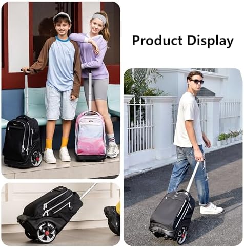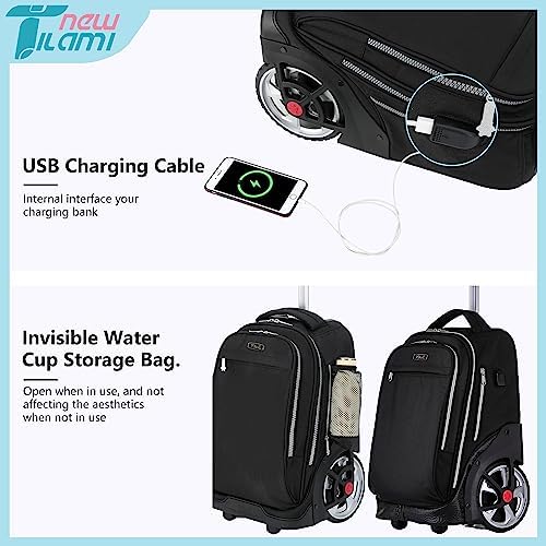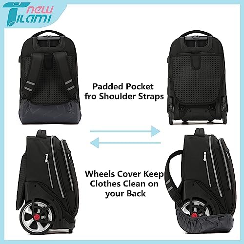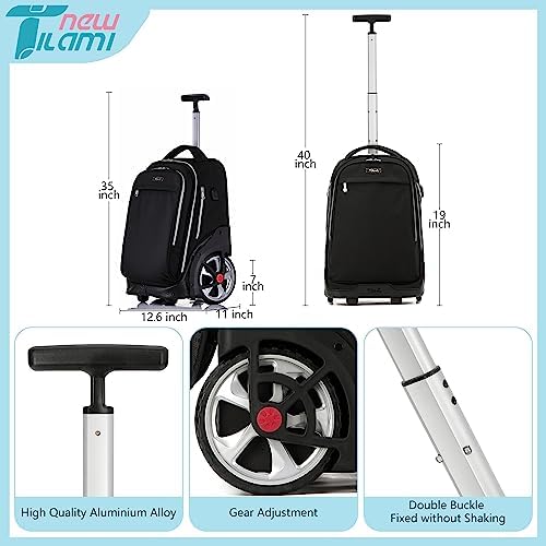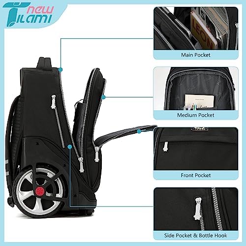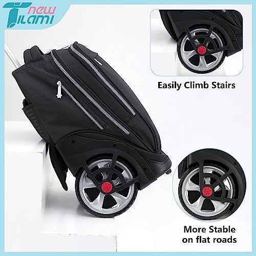 NEW TILAMI 19 Inch Rolling Backpack with Lunch Bags Wheeled Computer Laptop Backpack Bookbag Roller Travel Bag for Women Men, Black