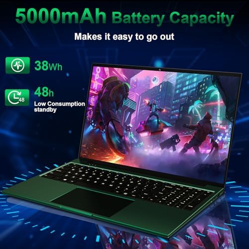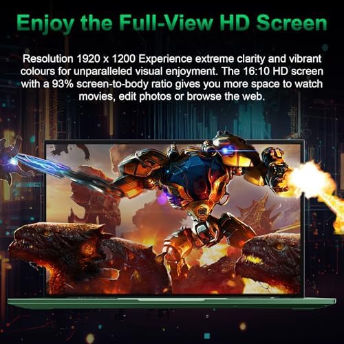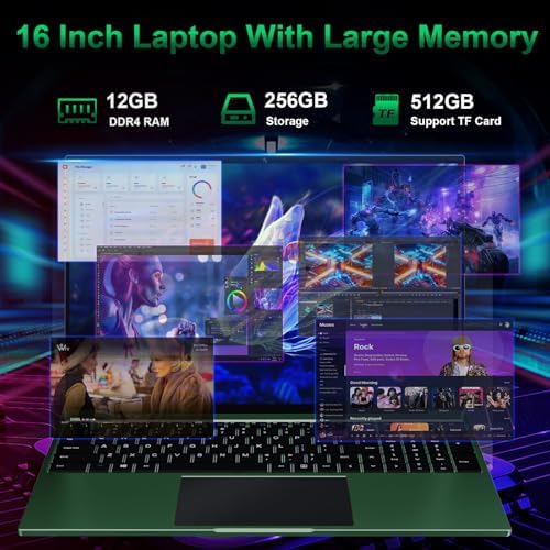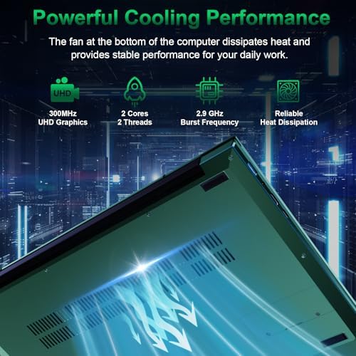 Stunning Visuals: This laptop computer features a 16 inch IPS FHD display with a 1920x1200 resolution and a 93% screen-to-body ratio. Enjoy vibrant colors and sharp details, all enhanced by the ultra-slim bezel design for an immersive viewing experience Powerful Cooling System: The bottom of our laptop is equipped with a fan that ensures effective heat dissipation, providing stable performance for your daily work. You no longer have to worry about your computer overheating while it is running Ample Storage: With 12GB DDR4 RAM and 256GB (128GB eMMC + 128GB SSD) total storage, this notebook offers speed and space. Plus, expand your storage easily with support for up to 512GB TF cards, giving you flexibility for all your files and applications Reliable Performance: This laptop is equipped with an Celeron 5305U processor featuring 2 cores and 2 threads, operating at 2.3GHz to 2.9GHz Versatile Connectivity: The laptop features 2.4G/5GHz WiFi for high-speed wireless performance and a smooth online experience. It also includes versatile Type-C port, standard USB 3.0, and HDMI for easy expansion and sharing with multiple devices
