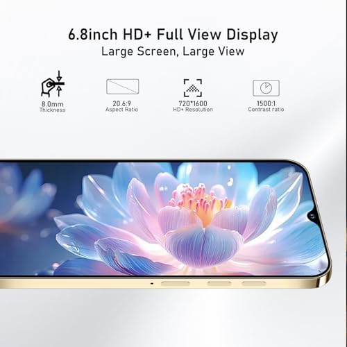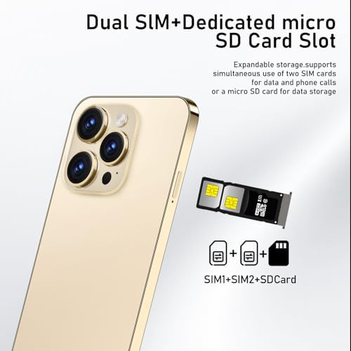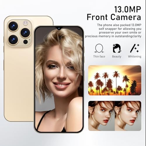 A14ProMax Unlocked Cell Phones 5G Smartphone,Android 13 Cell Phones Snapdragon 8Gen2 6.8" HD Screen 13MP+50MP 6800mAh Support Dual SIM Fingerprint Lock GPS Face ID (6GB+128GB, Gold)