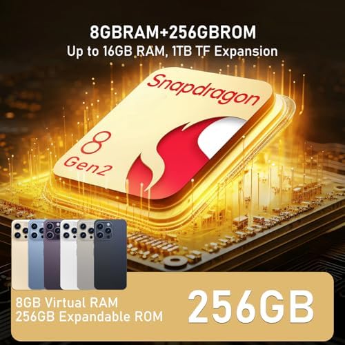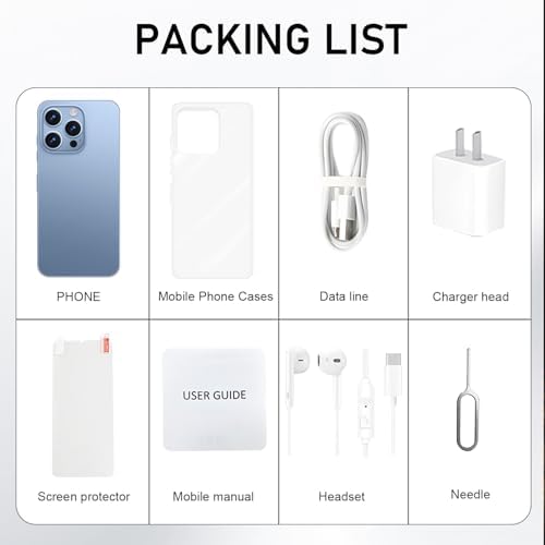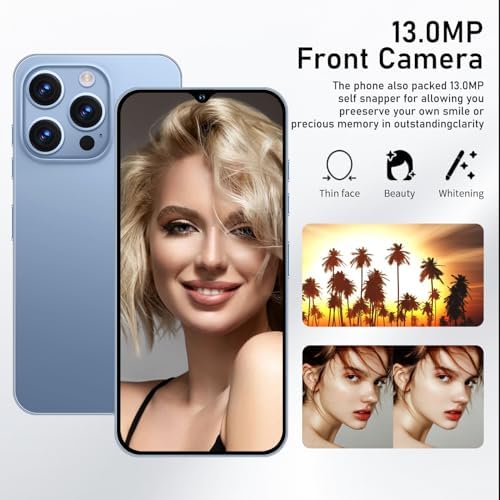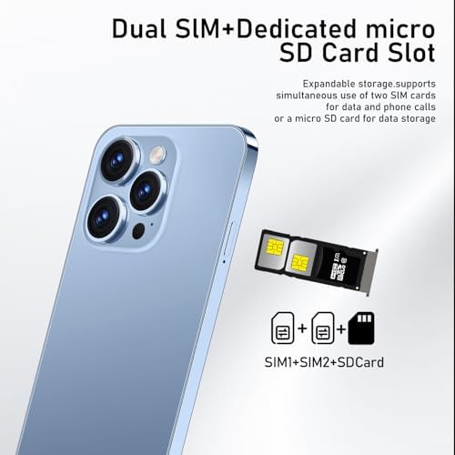 A14ProMax Unlocked Cell Phones 5G Smartphone,Android 13 Cell Phones Snapdragon 8Gen2 6.8" HD Screen 13MP+50MP 6800mAh Support Dual SIM Fingerprint Lock GPS Face ID (8GB+256GB, Blue)