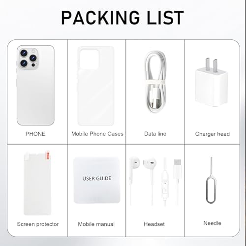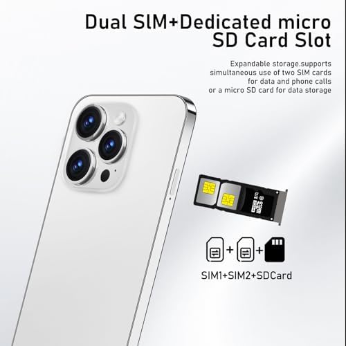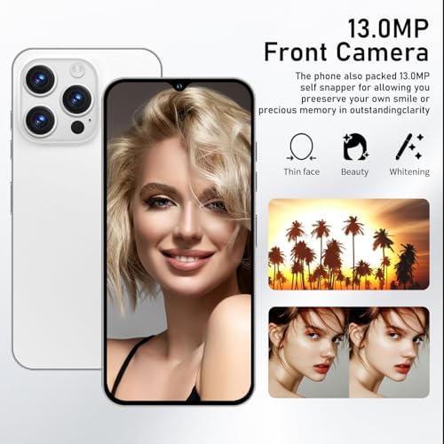 A14ProMax Unlocked Cell Phones 5G Smartphone,Android 13 Cell Phones Snapdragon 8Gen2 6.8" HD Screen 13MP+50MP 6800mAh Support Dual SIM Fingerprint Lock GPS Face ID (6GB+128GB, White)