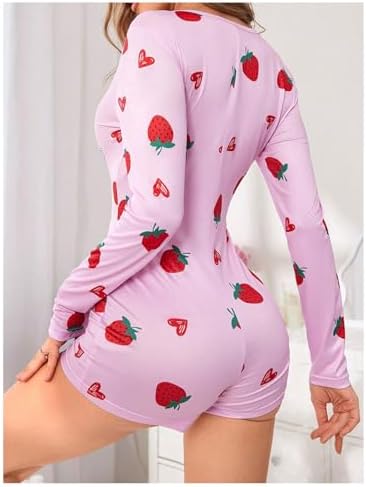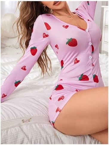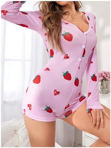 Features: Strawberry print, cute and sexy, v neck, romper pajama, button front, soft, Fabric: This women long sleeve romper shorts is made of soft and breathable fabric, which will provide you comfortable wear experience Occasion: Perfect for everyday, nightgown, sleepwear, daily home wear, lounge wear, living room, comfortable home wear, daily life Care Instructions: Machine wash or professional dry clean, Tumble Dry Please refer to product measurement in the last item picture before ordering (not human body size) #478,802 in Clothing, Shoes & Jewelry ( ) #608 in