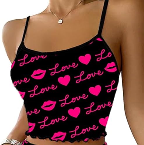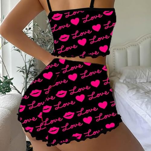 Women shorts pajamas set mdae of 95% polyester and 5% elastane, high-quality and skinfriendly, lightweight, stretchy, breathable, sofy and comfy, makes perfect Valentines Day gift for family and friends 2 Piece lounge set for women, crop camisole and high waisted shorts matching set, fashion hearts / lips printed, slim fit style, flattering your body figure and making you look more sexy and charming Valentine pajamas set for women, ideal for home daily, lounge wear, family day, friends gatherings, Valentines Day, Anniversary, honeymoon, birthday, mother's day, pajama party, sleepwear, and so on The women two-piece loungewear set would be a nice gift for wife, girlfriend, mom, daughters, sisters, friends, besties, etc., she will love this cute shorts pjs and will get lots of compliments on it Package Content: 1 x Women Camisole, and 1 x Shorts. This women pajamas set is available in size S-L and several vivid colors, please select your favorite colorand check the size chart carefully before buying #672,508 in Clothing, Shoes & Jewelry ( ) #4,058 in