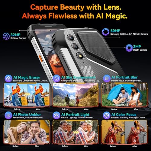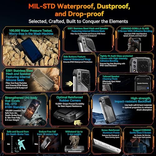 【Global 1st Stereo Speakers & Dual LED Flashlights】This PILOT 1 Rugged phone introduces the world's first 5W 138dB stereo speakers, offering an immersive audio experience. It's perfect for outdoor activities, camping, hiking, or any noisy environment. Additionally, this PILOT 1 rugged smartphone is equipped with dual super-bright LED flashlights, providing up to 170 lumens of brightness with a reach of 18 meters. This feature is incredibly useful for night hiking, emergency repairs, power outages, or outdoor adventures. 【IP68/IP69K Rating & Extreme Durability】Oscal PILOT 1 Gaming Phone has achieved IP68 and IP69K certifications, allowing it to be submerged in 1.5 meters of water for up to 30 minutes. It is dustproof and resistant to high-pressure and high-temperature water jets. Whether in heavy rain, dusty construction sites, harsh outdoor conditions, or during extreme sports, this Pilot 1 waterproof phone will keep working reliably. 【15000mAh Battery, 33W Fast Charging & OTG】The PILOT 1 waterproof phone is powered by a massive 15000mAh battery, providing up to 71 days of standby time. With 33W fast charging, you can get 20% of the battery in just 27 minutes. The OTG feature allows this tank phone to charge other devices like phones, tablets, smartwatches, and even drones. No more battery worries during long flights, camping trips, or power outages. 【18GB RAM + 256GB ROM & Android 14 OS】This PILOT 1 Celular Indestructible features 18GB of RAM (6GB + 12GB virtual) and 256GB of storage (expandable up to 2TB). This Rugged phone 5G allows you to run multiple applications smoothly without any lag and store plenty of photos, videos, documents, and apps. Paired with Android 14, it ensures seamless multitasking, fast app launches, and easy task switching. With ample space for your apps, media, and files, the PILOT 1 offers an outstanding mobile experience. 【50MP AI Main Camera + 32MP Front Camera】The PILOT 1 is equipped with a 50MP AI main camera featuring the ISOCELL JN1 sensor and Magic Eraser functions, capturing clear and vivid photos. The 32MP front camera with AI Beauty Mode 2.0 of this rugged smartphone unlocked is perfect for selfies. Whether it's landscapes, outdoor moments, group photos, or portraits, the PILOT 1 camera will preserve your memories beautifully. 【6.67-Inch IPS Ultra HD Display】This PILOT 1 gaming phones feature a 6.67-inch IPS Ultra HD display with a 90Hz/60Hz refresh rate and 700 nits of brightness. This cell phone offers stunning visuals for movies, games, and browsing. The high refresh rate ensures smooth scrolling, and the bright screen is visible even in direct sunlight. Wide viewing angles ensure shared viewing without color distortion, providing you with the best visual experience. 【Google Gemini is Living Now】The power of Pilot 1 Google Gemini can provide you with efficient, customized AI solutions. It supports multiple forms of input and output, such as text, images, audio and video, and is capable of handling complex multimodal tasks, as well as having the ability to quickly generate high-quality output for scenarios that require immediate feedback. For example: Quickly sift through your phone apps, give you reliable answers and info, create more brainstorm ideas and kickstart your creative process. 【What Can You Get & Excellent After-Sales Service】What you'll receive: 1 rugged phone, 1 type c charging cable, and a 2-year warranty. Enjoy the peace of mind that comes with a 1-year warranty and access to our dedicated 24/7 professional customer support team. We prioritize customer satisfaction and are committed to providing you with a premium experience at every step.