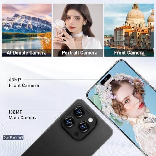 I16 PROMAX Unlocked Phone,6.99" HD Screen The Phone,8+256GB with 128GB Memory Card Cell Phone, Android 13.0,108MP & 68 Camera,Photo Shortcut button/5G/Face ID/Fingerprint Lock (Black)