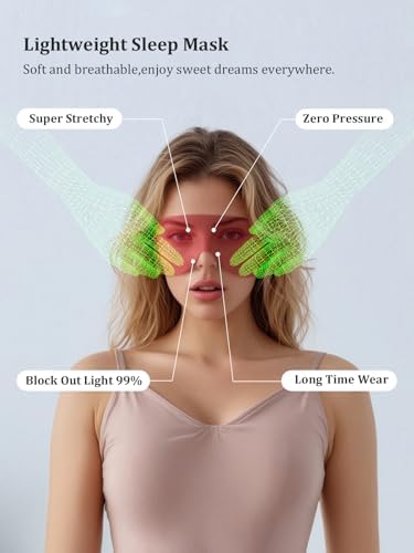 Total Blackout Eye Mask: This ergonomic sleep mask provides complete light-blocking with its upgraded nose cutout and contours. Perfect for airplane travel, yoga, and vacations, ensuring deep, uninterrupted sleep. Thin and Lightweight Design: Weighing only 5.6g, this sleeping mask offers a barely-there experience. The ultra-soft and breathable fabric ensures no pressure on your eyes, keeping you comfortable for long periods. Perfect for All Sleep Positions: Designed with ear hanging straps, this eye mask stays securely in place without pulling hair or smudging makeup. Ideal for side, back, and stomach sleepers, it blocks light from all sides. 7-Piece Stretchable Eye Covers Set: This set includes 7 colors for a fresh look every day. The stretchy, elastic fabric adapts to fit most head sizes, making it perfect for men, women, kids, and elderly users. A great gift idea! Ideal for Travel and Relaxation: Whether you're on an airplane, vacation, doing yoga, or just taking a nap, this lightweight sleeping mask is your go-to for comfortable, stress-free sleep.