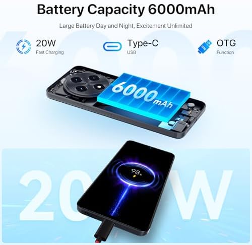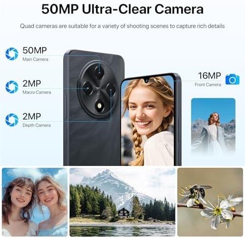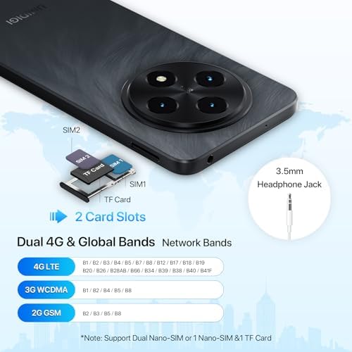 【6.9-inch 120Hz & Smart Box Speaker】UMIDIGI G100 unlocked cell phone features a 6.9-inch display,the 120Hz refresh rate gives us a smoother viewing experience, especially when playing games and watching short videos! High-fidelity colors, clear images, and Smart box speaker technology make movies and games more exciting. Enjoy full viewing angles, and a bright display of up to 450 nits for happy moments anytime. 【50+2+2MP Triple Camera & 16MP Front Camera】The rear camera of this G100 phone uses a triple comprehensive design of 50MP Main Camera+2MP Macro Camera+2MP Depth Camera. The 50MP high-resolution main camera has super capture capabilities for color, contour and light. There are also professional cameras for extremely close-range tiny things and ultra-long-range scenery. The night view also has dual flash lights. The camera focuses independently, and we only need one click to get the best effect! The 16MP front camera is specially prepared for selfies, and the portrait mode is to discover your beautiful eyes! 【Octa-Core Processor & 16GB+128GB/1TB Expand 】 G100 6+128GB unlocked android phone features an Octa-core Processor, ensuring superior performance, faster fluidity, and reduced power consumption. Enjoy optimal gaming and image processing. The 8GB RAM+128GB ROM storage expands to 16GB RAM (with 8GB virtual memory). With 128GB ROM expandable to 1TB, you can store more media. The dedicated Micro SD slot supports up to 1TB of external storage.Moreover, Android 14 introduces cutting-edge privacy and security features that offer users a range of personalized settinas options to cater to their privacy protection reauirements. 【6000mAh Battery & 20W Fast Charge】The 6000mah large battery can be standby for a long time. Even if you watch videos and play games continuously, you don’t need to charge multiple times in a day. The smart battery management function can also help us save power loss to the greatest extent! The 20W charger equipped with a standard type-c interface can also be quickly charged, and the OTG function can also transmit data and charge with other devices! 【Multi-Function】UMIDIGI G100 mobile phone support Fingerprint & Face ID Unlock. This 4G dual SIM phone unlocked features 3 card slots accommodating 2 nano SIM cards + 1 micro TF card (SIM/TF not included).The 3.5mm headphone jack and FM radio provide you with more convenience. It also includes practical functions such as GPS, NFC, G/L-Sensor, Virtual P-Sensor, Virtual Gyroscope, etc. 【Please Read Before Purchasing】UMIDIGI G100 cell phone supports 4G networks while compatible with 3G and 2G networks.Support Network: 4G LTE:B1/2/3/4/5/7/8/12/17/18/19/20/26/28AB/66 B34/39/38/40/41F; 3G WCDMA: B1/2/4/5/8; 2G GSM: B2/3/5/8; Note: Before buying, check your SIM card compatible band.