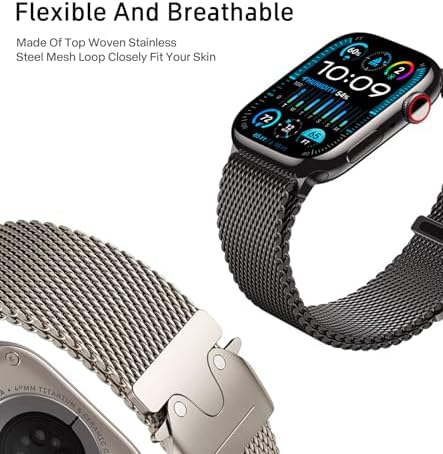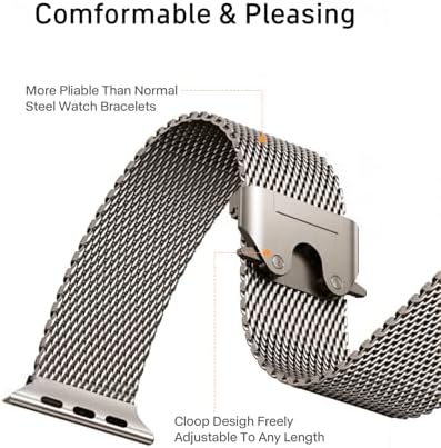 COMPATIBILITY: Designed to work with all Apple Watch models including 38mm, 40mm, 41mm, 42mm, 44mm, 45mm, 46mm, and 49mm sizes PREMIUM MATERIAL: Crafted from durable stainless steel metal links that provide both style and longevity ADJUSTABLE LENGTH: Removable links allow for custom sizing to fit most wrist sizes comfortably SECURE CLOSURE: Features a double-button clasp mechanism that ensures your watch stays firmly in place VERSATILE DESIGN: Sleek metallic finish suitable for both casual and formal occasions, perfect for men and women