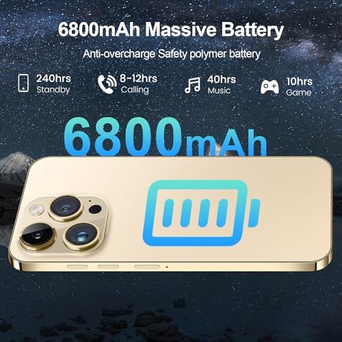 【6800mAh large battery】 The cell phone is equipped with a large 6800mAh battery, saying goodbye to battery anxiety. When you are still worrying about batteries, please choose it! Trust me, you don't need to charge it all the time, because its battery is very big enough for you to use, and it is enough to meet your daily needs! you can immerse yourself in everything this phone has to offer without constantly worrying about charging. Whether you're on a long road trip, exploring new places, or just making it through a busy day at work, this powerful battery ensures your smartphone stays charged when you need it most. 【6.8 HD+ for Android 13.0】Please note that this is an Android phone with a large perforated screen, 2.5D curved edges, and a premium heat bending glass back cover. 5-point capacitive touchscreen. Magnesium aluminum body. Facial recognition, on-screen fingerprint unlock to protect your privacy. comfortable to hold. Adopts facial recognition and on-screen fingerprint unlocking to better protect your privacy. 【Excellent camera features】 Unlock your photography potential with our smartphone’s powerful 48MP+108MP dual camera setup. helping you capture and record the most exciting memorable moments with high-quality images or videos, perfect for indoors outdoors. From stunning landscapes to intimate portraits, this camera system allows you to be creative and record life's precious moments with extraordinary clarity. Say goodbye to blurry, low-quality photos - with this smart phone you can capture and share high-resolution images that are truly eye-catching. Let your photography skills shine with the exceptional features of our smartphone dual camera setup. 【Global band and dual SIM 5G mobile phone】This machine adopts 5G smartphone 5G smartphone has faster transmission speed, short time delay, high positioning accuracy, wide link for customers to feel a more advanced experience. experience. 【Cell Phones+Giveaways】You'll receive not only the A15ProMax phone but also a box, a user manual, a charger adapter, a USB C data cable, a pair of headphones, a protective screen and a case